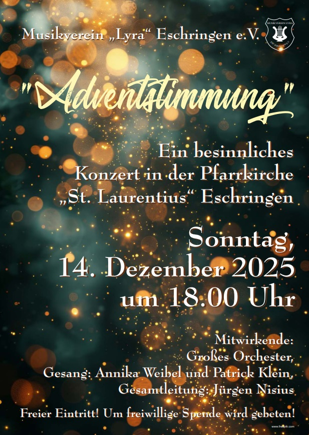 « Alle Veranstaltungen Adventskonzert 14. Dezember 2025 von 18:00 - 19:30 « Weihnachtsmarkt Zum Kalender hinzufügen Google Kalender iCalendar Outlook 365 Outlook Live Details Datum: 14. Dezember 2025 Zeit: 18:00 - 19:30 Veranstaltungsort Pfarrkirche „St. Laurentius“ Andreas-Kremp-Str. 18 Eschringen, 66130 Google Karte anzeigen Veranstalter Musikverein